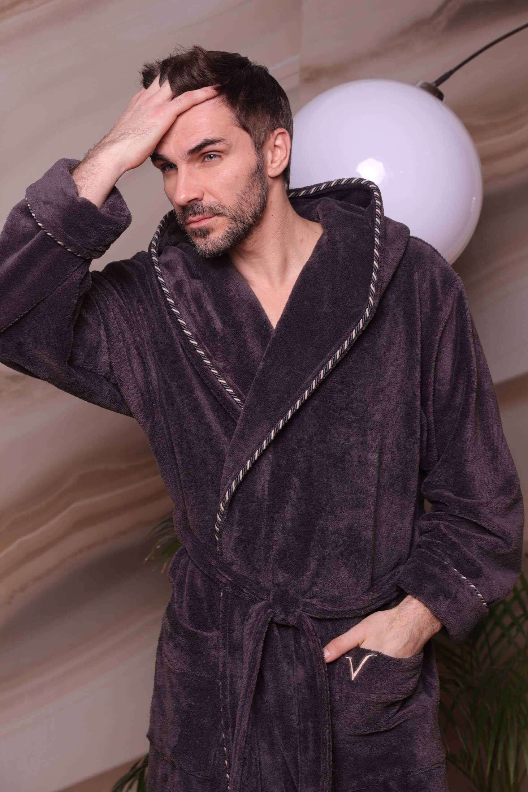 Мужской бамбуковый халат с капюшоном Zevs (Антрацит)